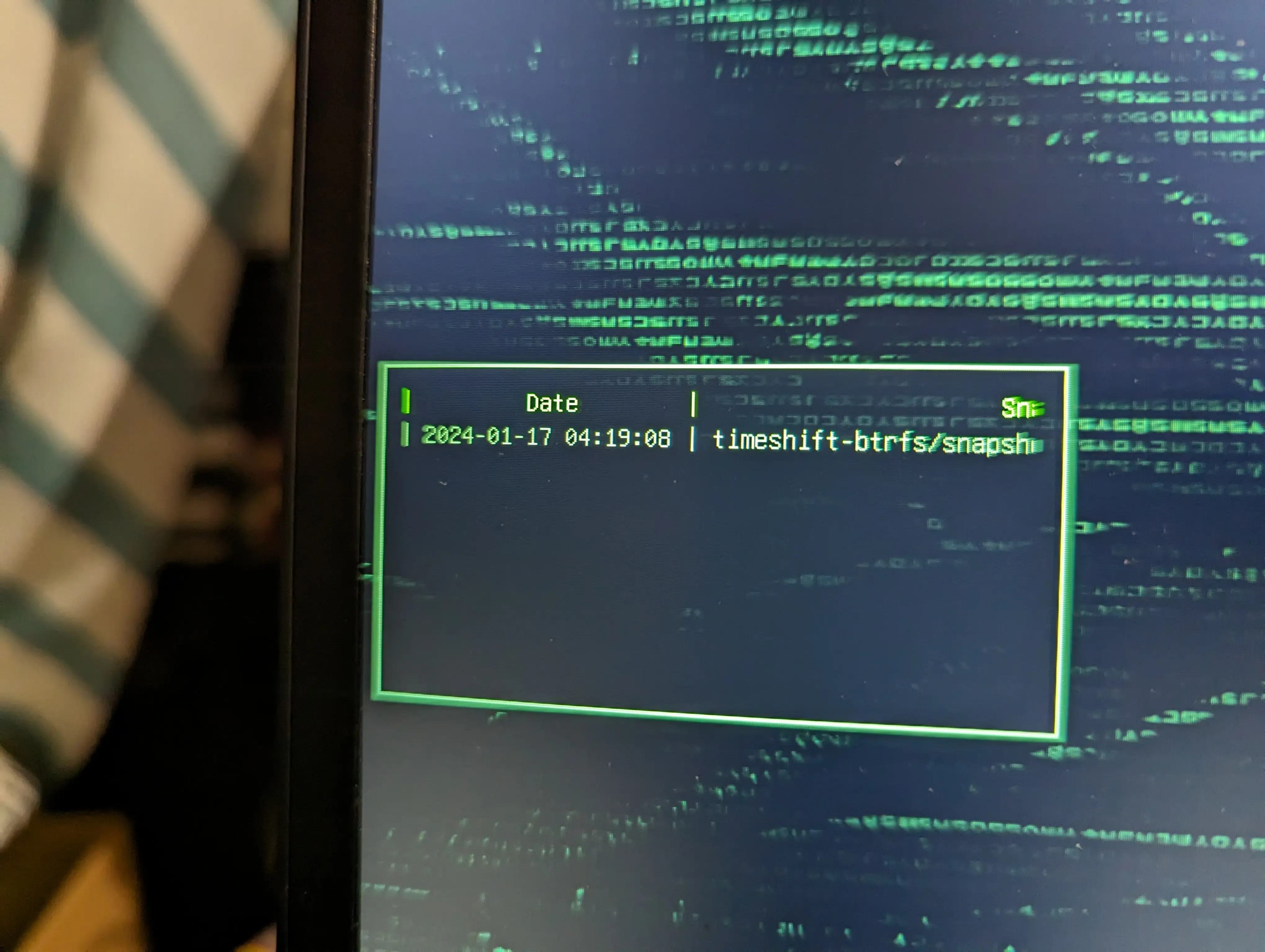 | Grub boot menu | Snapshots list |